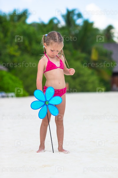 Маленькая девочка на пляже во время летних каникул