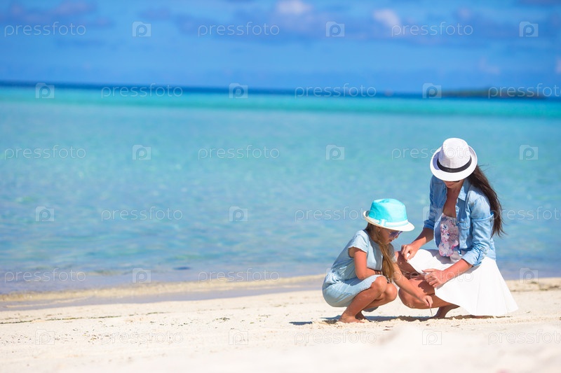 Мать и ребенок на песчаном пляже