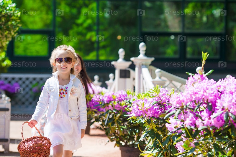 Очаровательная девочка с цветами в саду