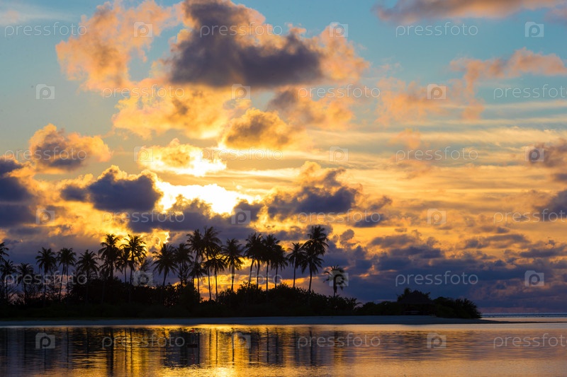 Красивый красочный закат на тропическом острове