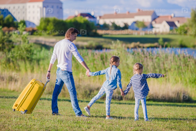 Счастливая семья готова для путешествия