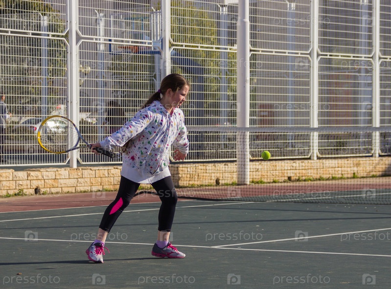 Девочка играет в теннис