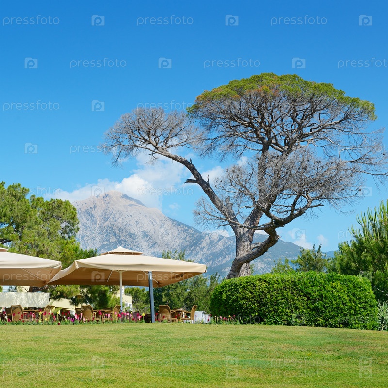 Красивое дерево на фоне большой горы
