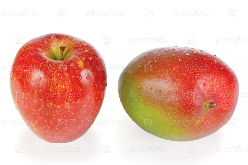 Манго и яблоко на белом фоне