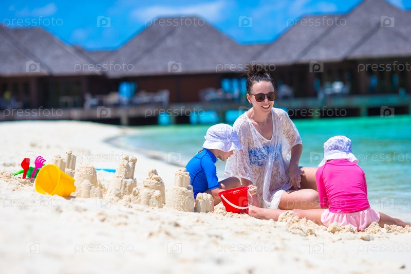 Мать с дочками на пляже