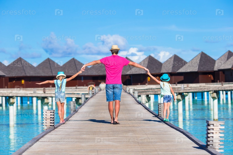 Отец с дочками на пирсе