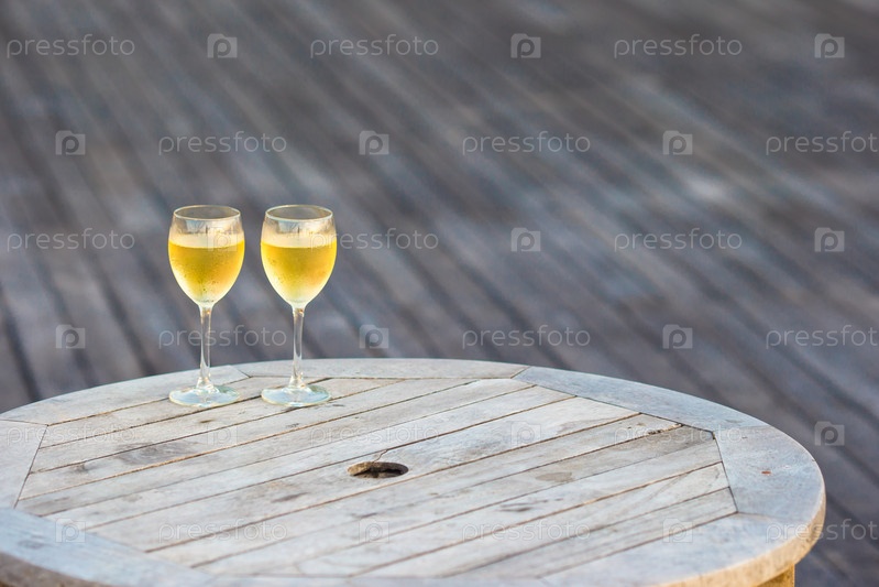 Два бокала вкусного белого вина на закате