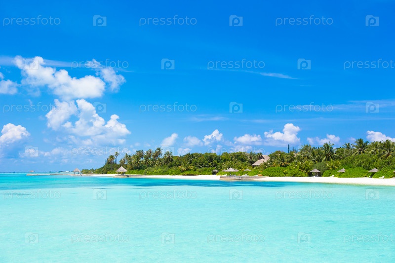 Красивый пляж с белым песком