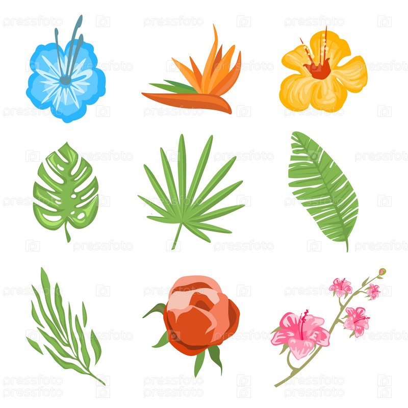 Набор традиционные и тропические цветы
