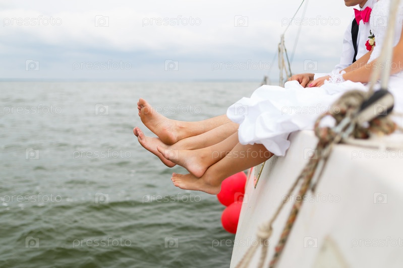 Ноги молодоженов на яхте