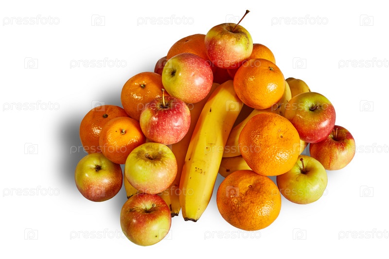 Спелые яблоки, апельсины и бананы