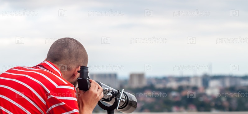 Мужчина смотрит в телескоп