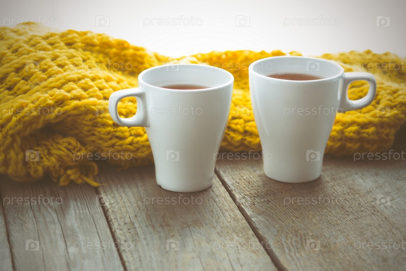 Чашечки чая и вязаный шарф