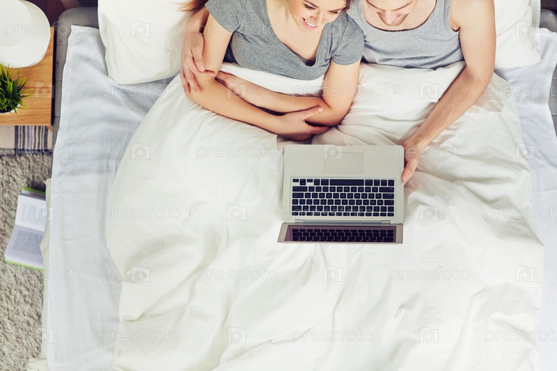 Пара в постели с ноутбуком