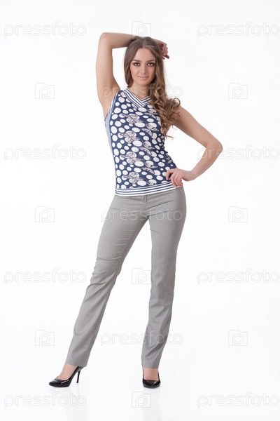 Молодая женщина в модной одежде