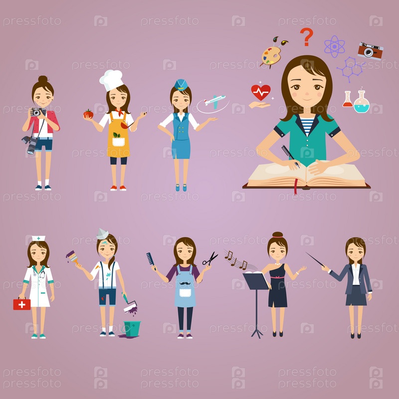 Концепция образования, девушка выбирает профессию