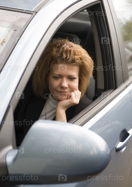 Портрет женщины, управляющей своей машиной с близкого расстояния