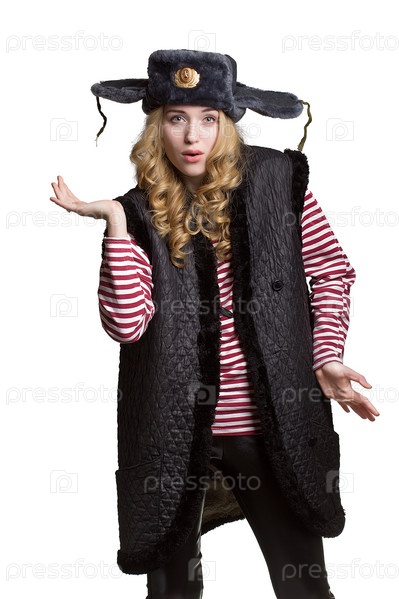 Женщина в шапке солдата