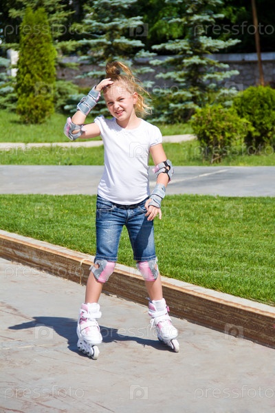 Девочка катается на роликах