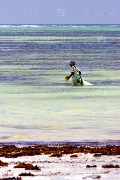Сбор водорослей у пляжа