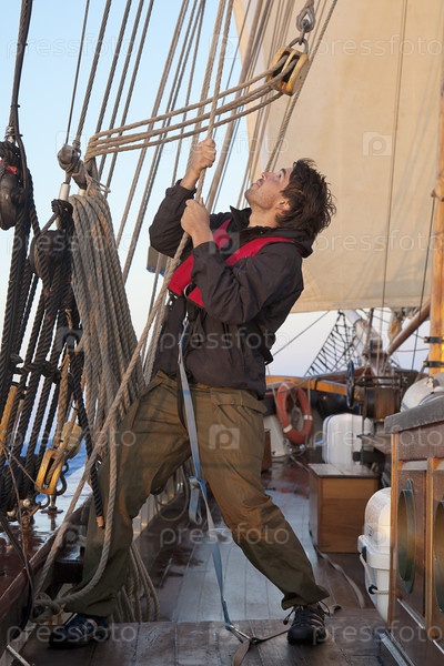 Молодой моряк на палубе корабля