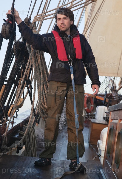 Молодой моряк на палубе корабля