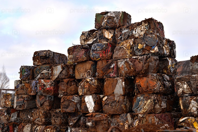 Куча сжатых автомобилей в блоках