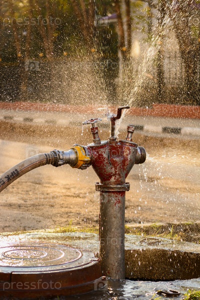 Старый пожарный гидрант под давлением