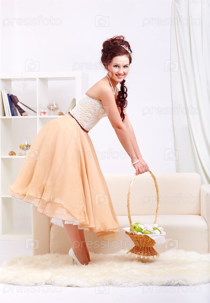 Портрет молодой женщины в пышном платье с корсетом в роскошном интерьере