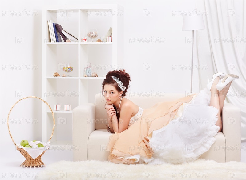 Портрет молодой женщины в пышном платье с корсетом в роскошном интерьере