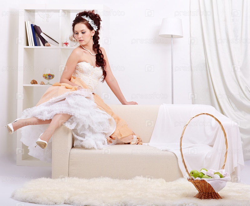 Портрет молодой женщины в пышном платье с корсетом в роскошном интерьере