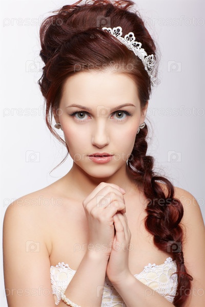 Портрет молодой девушки на сером фоне