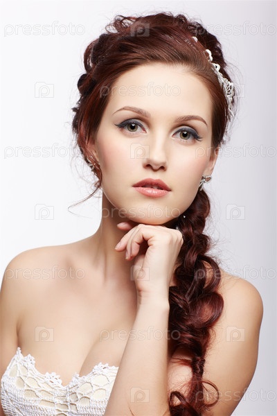 Портрет молодой девушки на сером фоне
