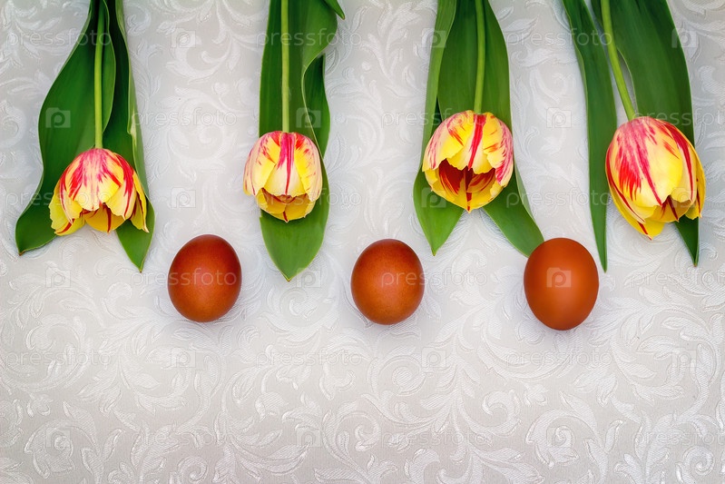 Пасхальные яйца и тюльпаны