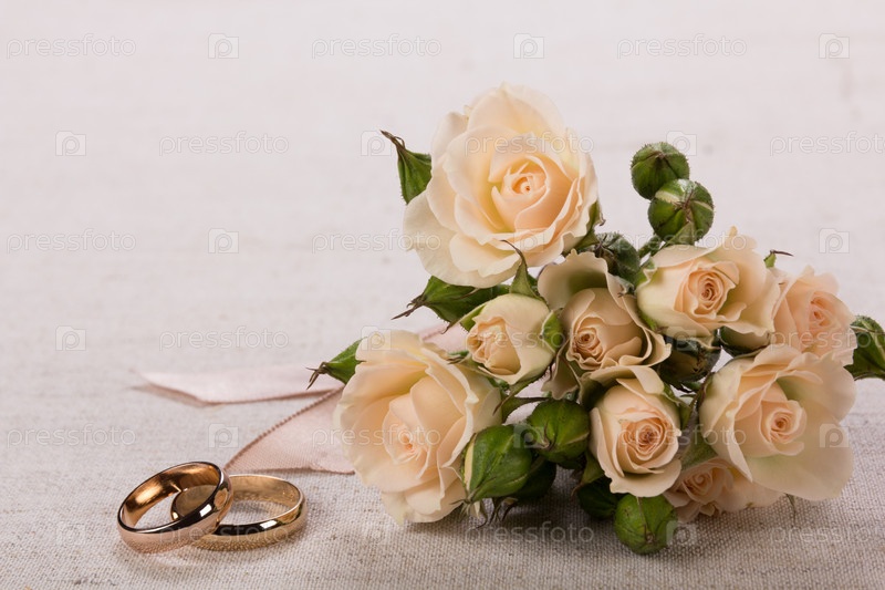 Обручальные кольца и свадебный букет
