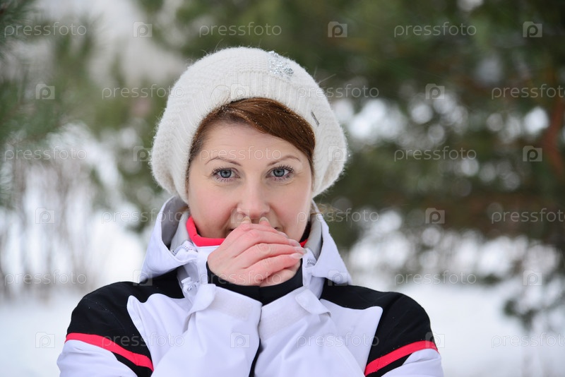 Женщина в еловом лесу зимой