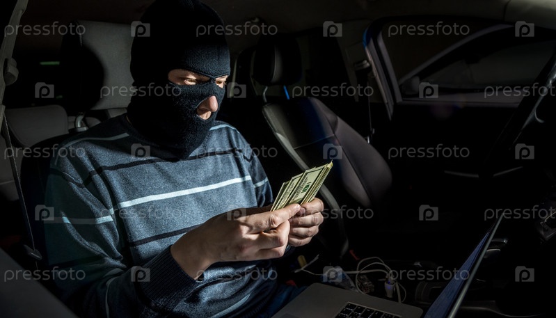 Хакер с ноутбуком внутри автомобиля