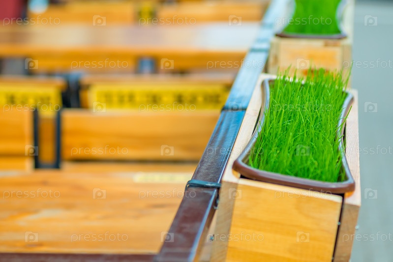 Сочная зеленая трава на корнизе