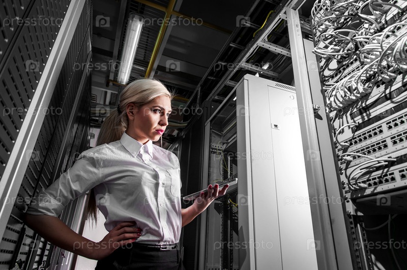 Молодой инженер в серверной комнате