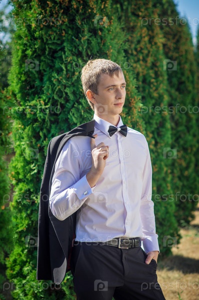 жених в черном костюме