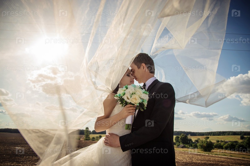 Нежные объятия молодоженов