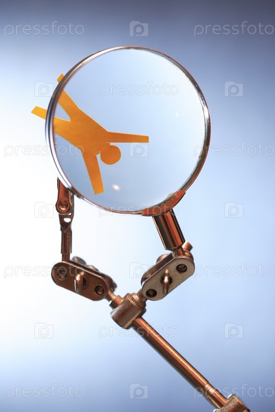 Бумажный человечек под увеличительным стеклом