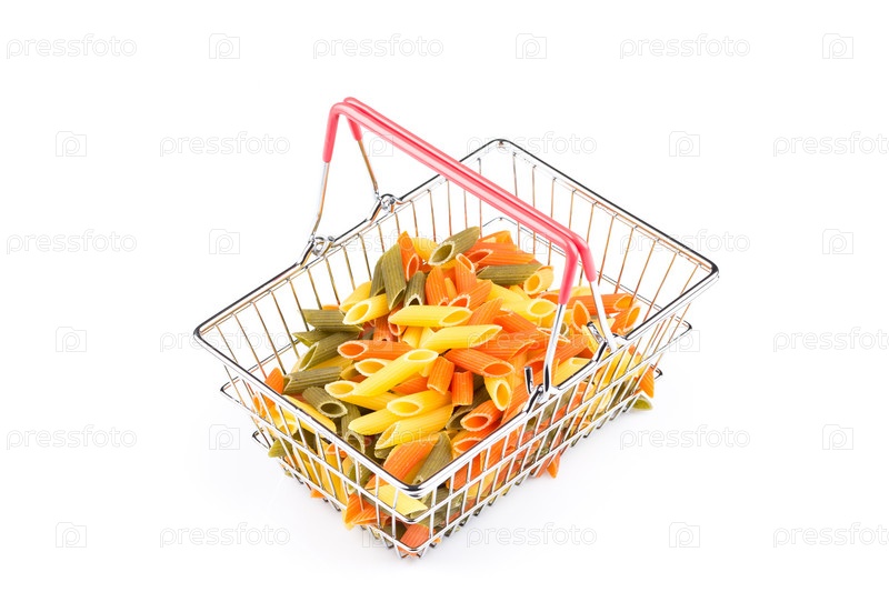 Разноцветные макароны в корзине