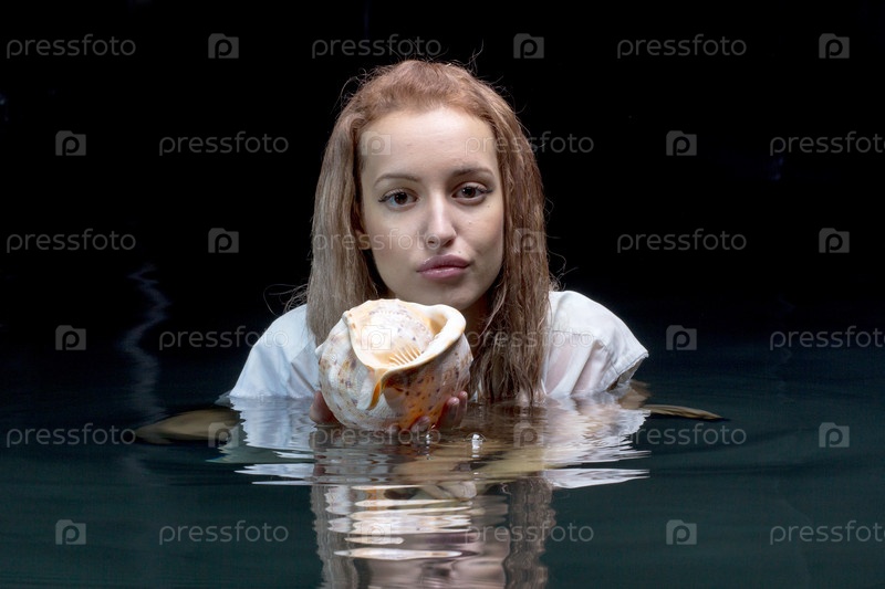 Женщина с раковиной в воде