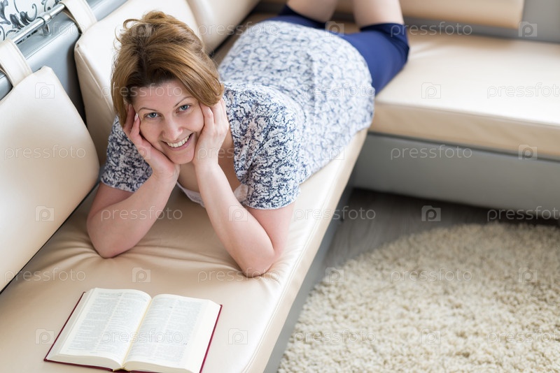 Женщина на диване с книгой