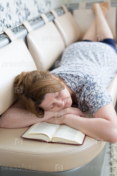 Женщина заснула во время чтения книги