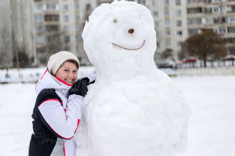 Женщина возле снеговика