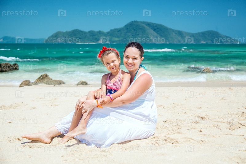 Мама с дочерью на пляже