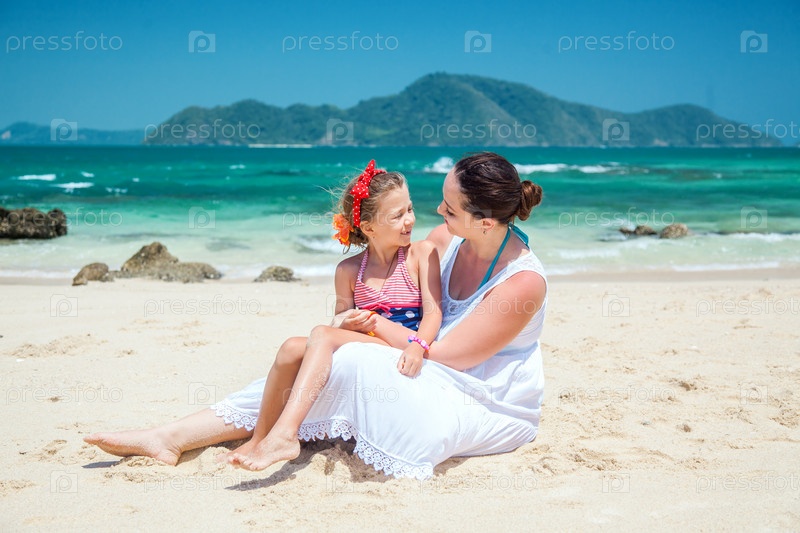 Мама с дочерью на пляже