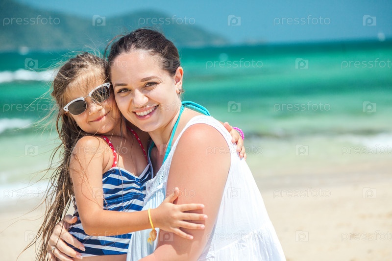 Мама с дочерью на пляже
